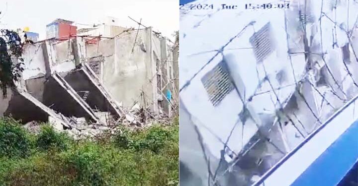 बेंगलुरु, 22 अक्तूबर (स्टिंग आप्रेशन ब्यूरो): शहर में मंगलवार को एक दर्दनाक हादसा देखने को मिला। यहां एक निर्माणाधीन इमारत अचानक जमींदोज हो गई। इस हादसे के बाद मलबे में 20 लोगों के फंसे होने की जानकारी सामने आ रही है। वहीं अभी तक मिली जानकारी के अनुसार एक मजदूर की मौत हो गई है। बताया जा रहा है बिल्डिंग में अभी भी निर्माण का कार्य चल रहा था, इसी दौरान ये हादसा हो गया। निर्माणाधीन बिल्डिंग गिरने का मामला बेंगलुरु के बाबुसापाल्या इलाके का बताया जा रहा है। बताया जा रहा है कि बारिश की वजह से ये हादसा हुआ है। वहीं मौके पर रेस्क्यू ऑपरेशन चलाया जा रहा है। वहीं मकान गिरने के समय का वीडियो भी सामने आया है। ये वीडियो घटनास्थल के पास ही मौजूद किसी सीसीटीवी कैमरे में कैद हो गयाय, जो अब सामने आया है। वीडियो में पूरी मकान को एक साथ गिरते हुए देखा जा सकता है। घटना का वीडियो देखकर हर कोई हैरान है। वहीं घटना के दौरान मकान में काम चल रहा था और वहां पर कई सारे मजदूर भी मौजूद थे। इनमें से करीब 20 मजदूर अंदर फंसे हुए बताए जा रहे हैं, जिनको बाहर निकालने का प्रयास किया जा रहा है। घटनास्थल पर राहत एवं बचाव दल मौजूद हैं। एक वरिष्ठ पुलिस अधिकारी ने घटना की जानकारी देते हुए बताया कि इमारत के अंदर 20 लोगों के फंसे होने की आशंका है। अन्य एजेंसियों की मदद से राहत एवं बचाव अभियान चलाया जा रहा है। अभी तक 14 लोगों को बाहर निकाल लिया गया है, जबकि 5 लोगों के अभी भी अंदर फंसे होने की आशंका है। वहीं एक मजदूर की मौत हो गई है। जानकारी के मुताबिक, अधिकारी मौके पर मौजूद हैं और अंदर फंसे हुए लोगों को सुरक्षित निकालने के लिए काम किया जा रहा है।